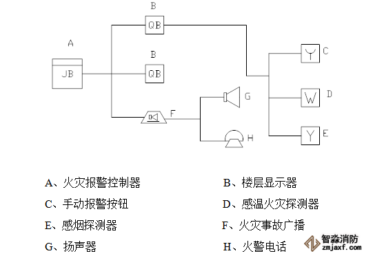 火災自動報警系統的基本結構如圖: