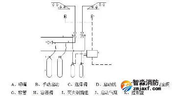 本系統(tǒng)的主要設(shè)備和器材包括:啟動(dòng)氣瓶、啟動(dòng)氣瓶、滅火劑瓶組、控制器、選擇閥、安全閥、容器閥、噴嘴等。