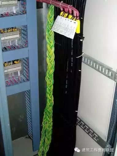 3.3.10電纜接地線統(tǒng)一引接,編織成辮子狀,壓接接線鼻子連接在接地銅條上。