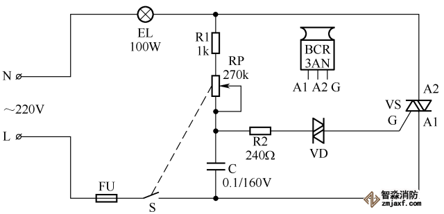 簡單的晶閘管調光燈電路