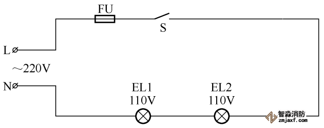 將兩個功率相同的110V白熾燈接在220V電源上使用的電路