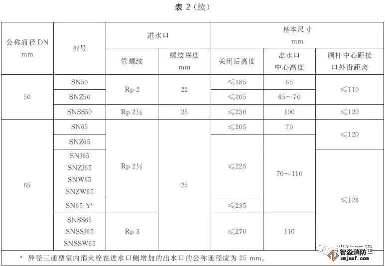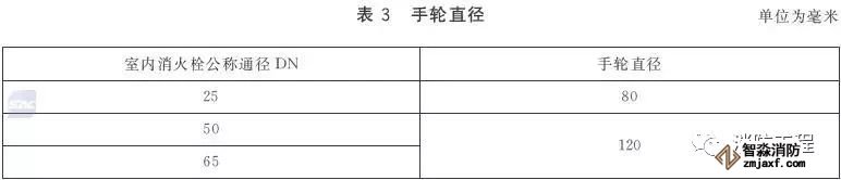 室內(nèi)消火栓的進水口應(yīng)為圓柱管螺紋,其進水口的螺紋尺寸應(yīng)符合表3的規(guī)定;閥桿與閥桿螺母應(yīng)為梯形螺紋。