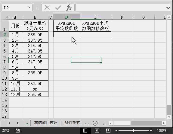 第二個函數(shù)公式”=AVERAGE(IF(B2:B13<>0,B2:B13))”。