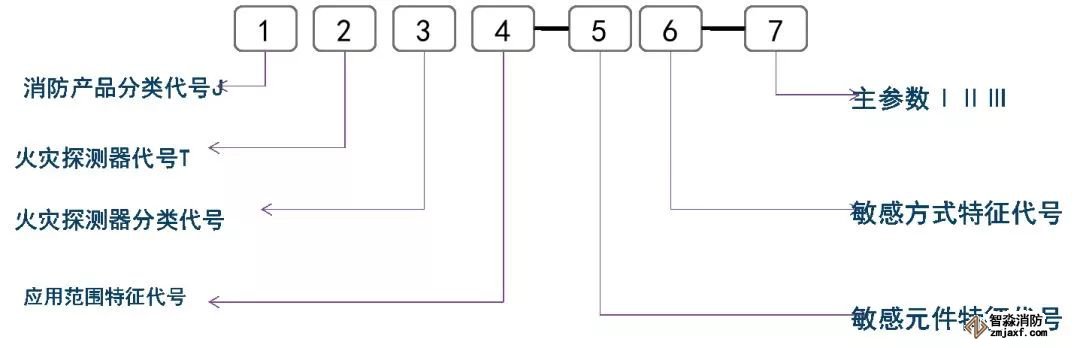 火災探測器產品型號編制示例: