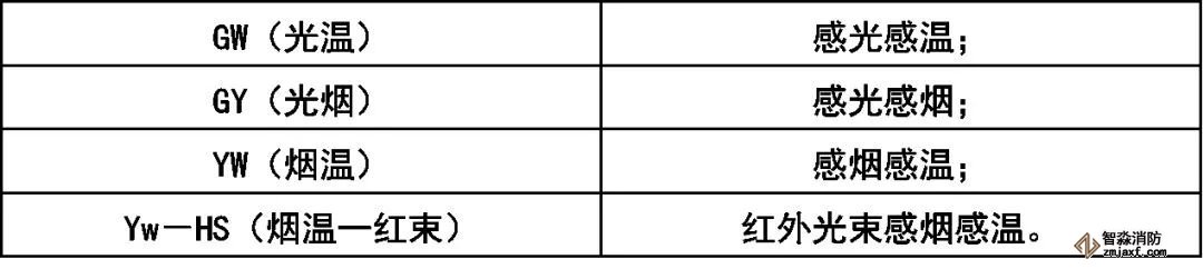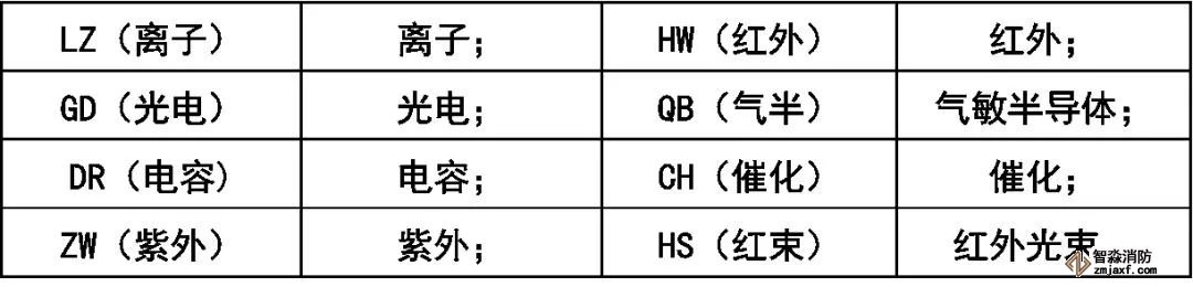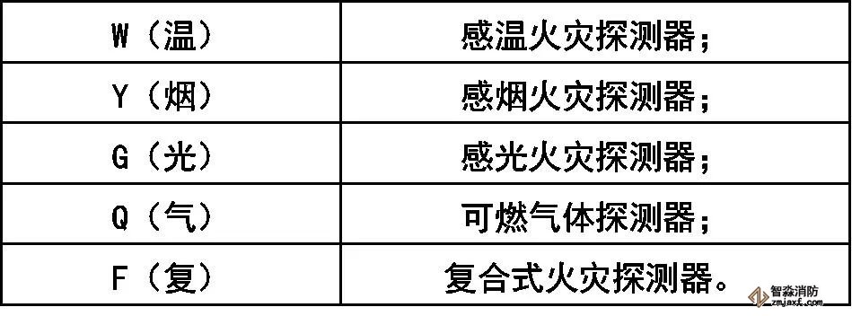 火災探測器分類代號: