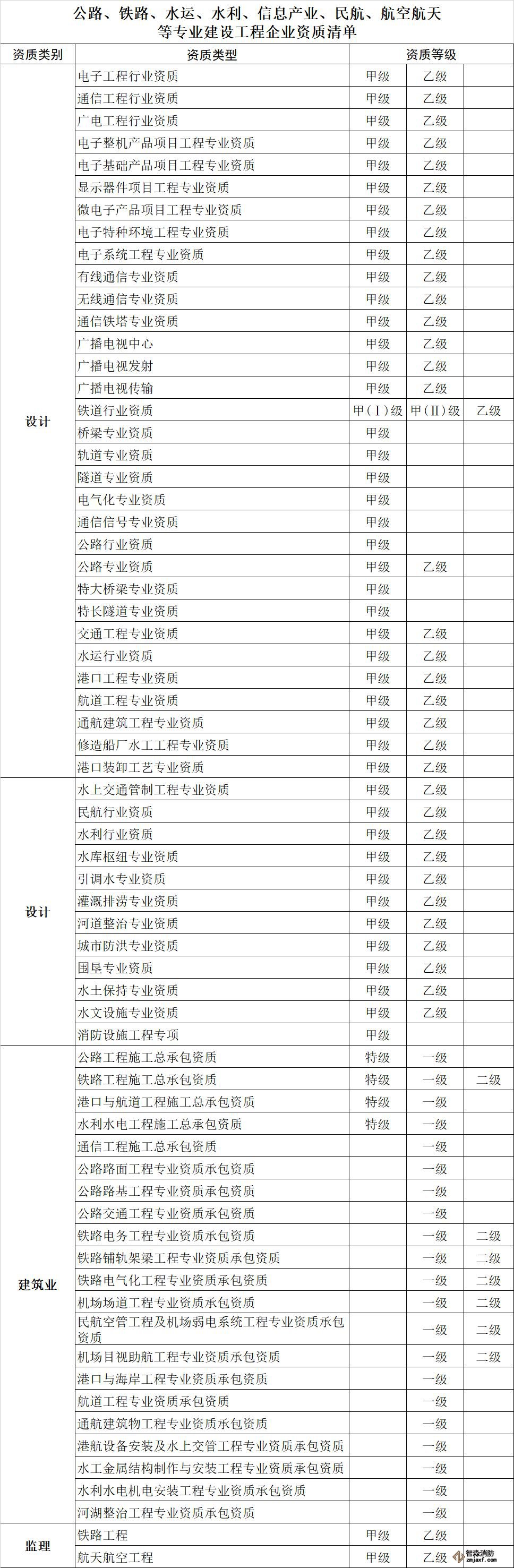 附件:公路、鐵路、水運、水利、信息產業、民航、航空航天等專業建設工程企業資質清單