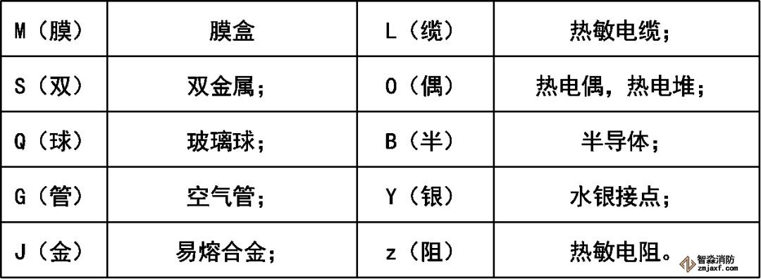 火災探測器分類代號: