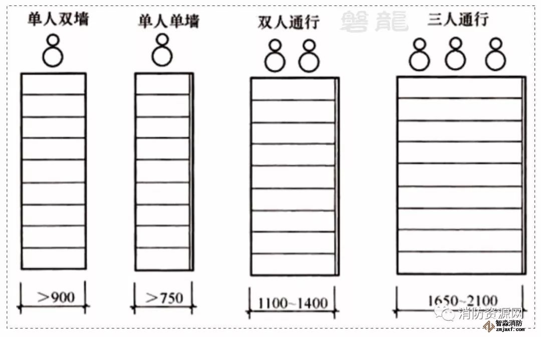樓梯梯段最小凈寬,應根據使用要求、模數標準、防火標準等的規定等綜合因素加以確定。