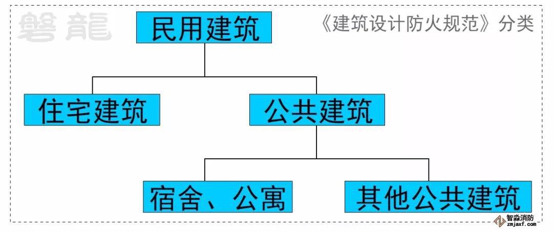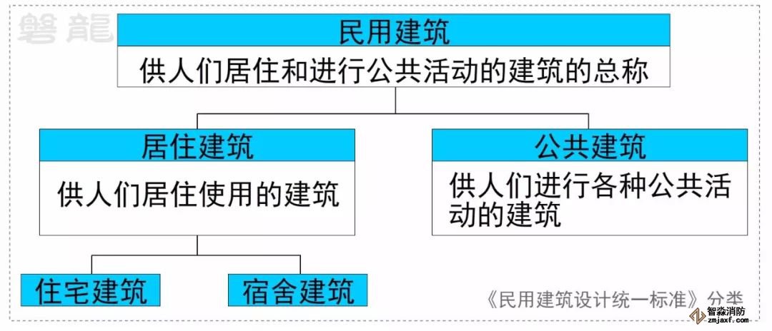 注:考慮宿舍、公寓等非住宅類居住建筑的火災危險性與公共建筑接近,因此,《建筑設計防火規范》將民用建筑分為公共建筑和住宅建筑兩大類,詳見專題:民用建筑-建筑分類!