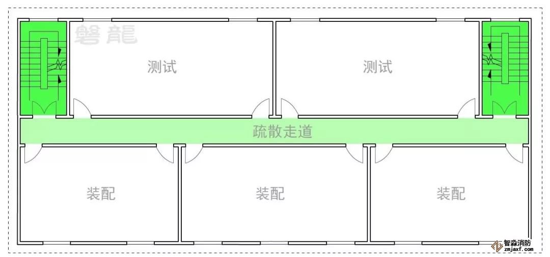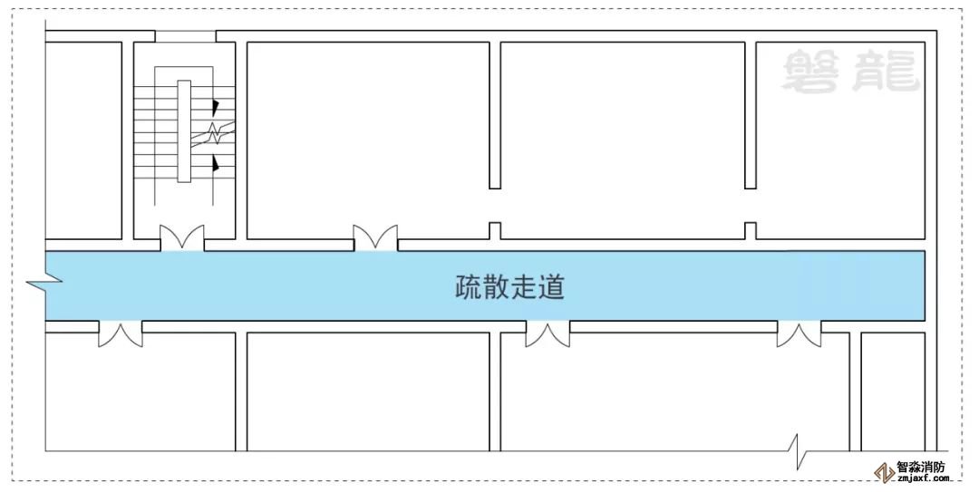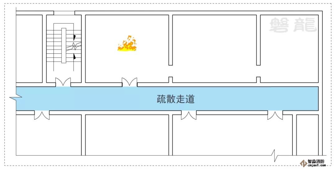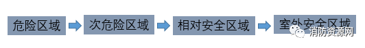 1、室內(nèi)房間屬于危險(xiǎn)區(qū)域,一旦發(fā)生火災(zāi),人員應(yīng)迅速疏散至相對(duì)安全的次危險(xiǎn)區(qū)域(疏散走道),通過疏散走道疏散至安全出口(圖示1)。