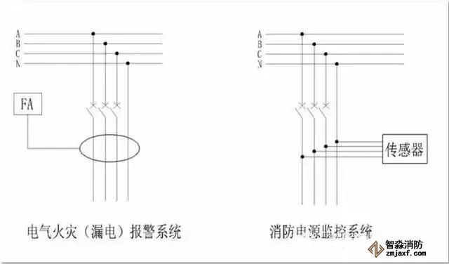 見下圖,左為電氣火災監控系統檢測位置,右為消防電源監控系統檢測位置