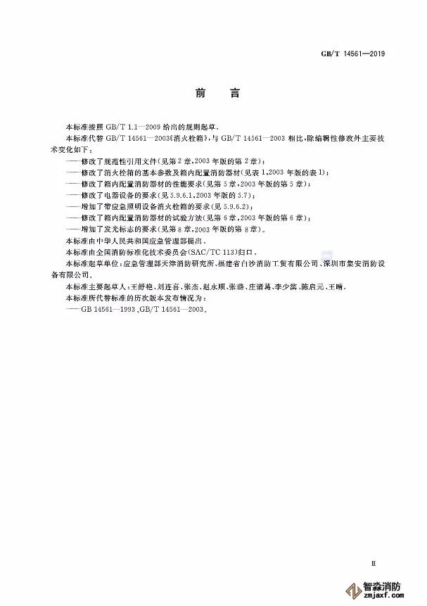 2. 修改了箱內配置消防器材的性能要求(見第5章,2003年版的第5章)。