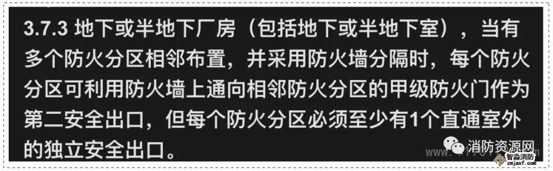 2、設(shè)置于地下或半地下(包括地下或半地下室)的廠房和倉庫,相鄰布置的防火分區(qū),可以利用防火墻上通向相鄰防火分區(qū)的甲級防火門,作為第二安全出口,詳見《建規(guī)》3.7.3、3.8.3: