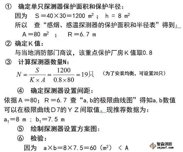 例如:一個地面面積為30m×40m的重點保護廠房,屋頂坡度為15°,房間高度8m,如果選用點型感煙探測器保護是否可以?如何布置探測器?