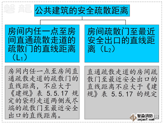 因此,規范圖示沒有明示疏散走道盡端到安全出口的距離要求,通常情況下,僅需控制好疏散門到安全出口的距離即可。