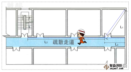 疏散走道是用于人員疏散通行至安全出口或相鄰防火分區的走道,疏散走道的兩側隔墻和樓板應滿足相應建筑耐火等級的燃燒性能和耐火極限要求,疏散走道不能有可燃物,也不能作為工作或作業場所。因此,通常情況下,疏散走道不會是火災發生部位,人員也不會在走道過多逗留。另一方面,疏散走道兩側房間內的疏散距離,也從側面限制了疏散走道的長度。