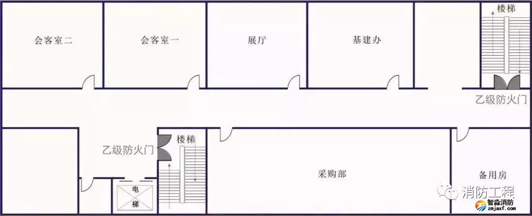 防火分區至避難走道入口處應設置防煙前室,前室的使用面積不應小于6.0㎡,開向前室的門應采用甲級防火門,前室開向避難走道的門應采用乙級防火門。當發生火災時,防火門可以在一定時間內阻斷火災和煙氣蔓延,保證人員逃生。