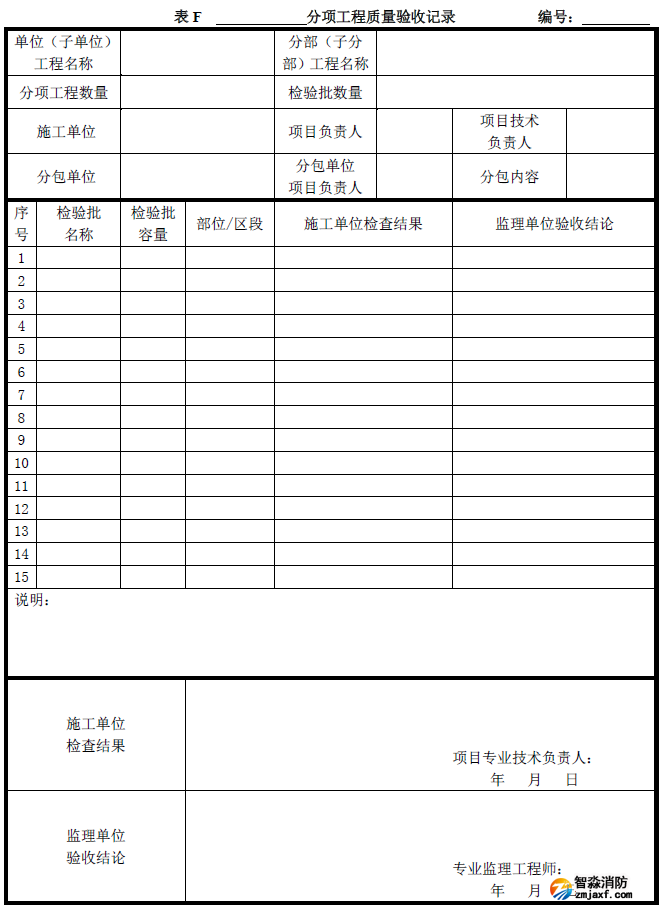 分項工程質量驗收記錄可按《建筑工程施工質量驗收統一標準》附錄F填寫。