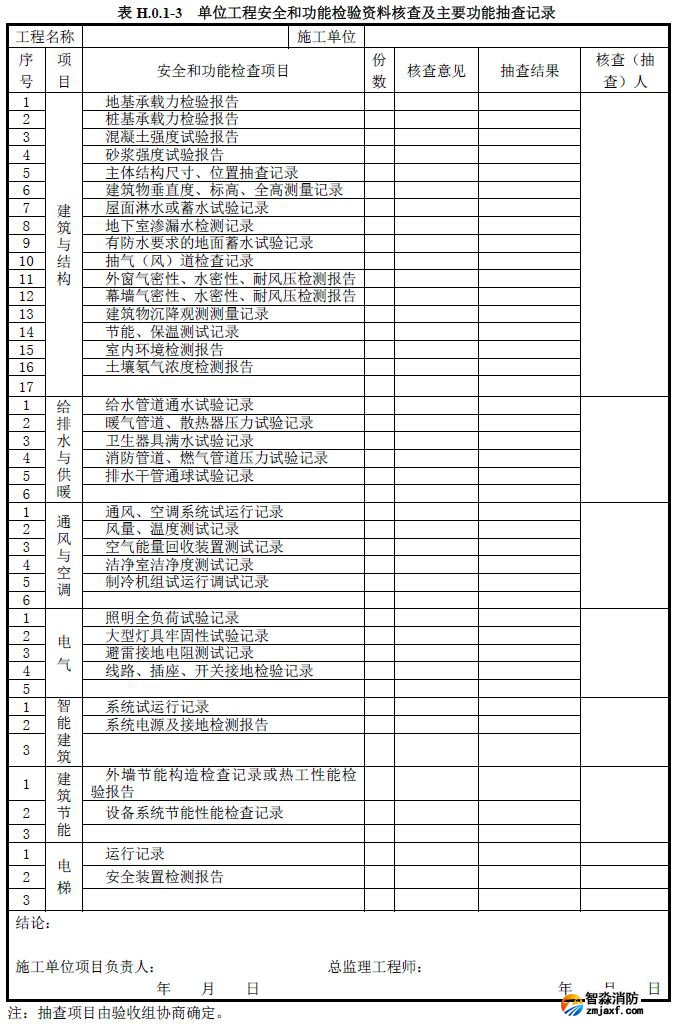 (3)所含分部工程中有關安全、節能、環境保護和主要使用功能的檢驗資料應完整。