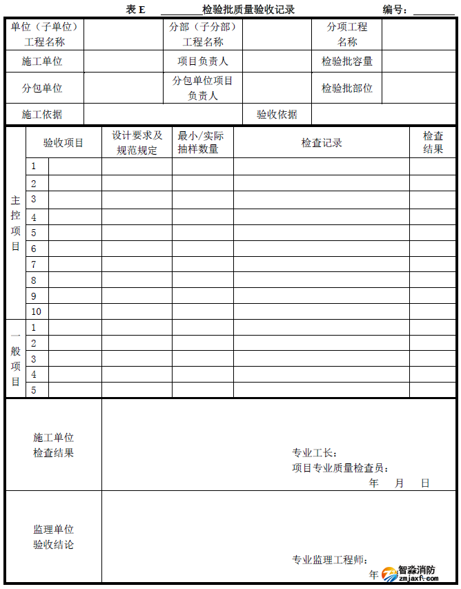 檢驗批質量驗收記錄可按《建筑工程施工質量驗收統一標準》附錄E填寫,填寫時應具有現場驗收檢查原始記錄。