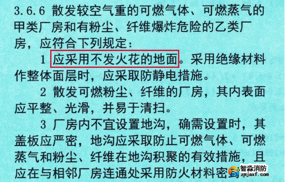 但是不發火花的地面有什么要求呢?我們來看另外一本規范的規定。