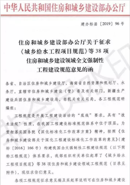 2月2日,住建部辦公廳發文。征求住建領域38部全文強制性工程建設規范意見。其中,《建筑防火通用規范》全文強制性規范在征求意見之列。
