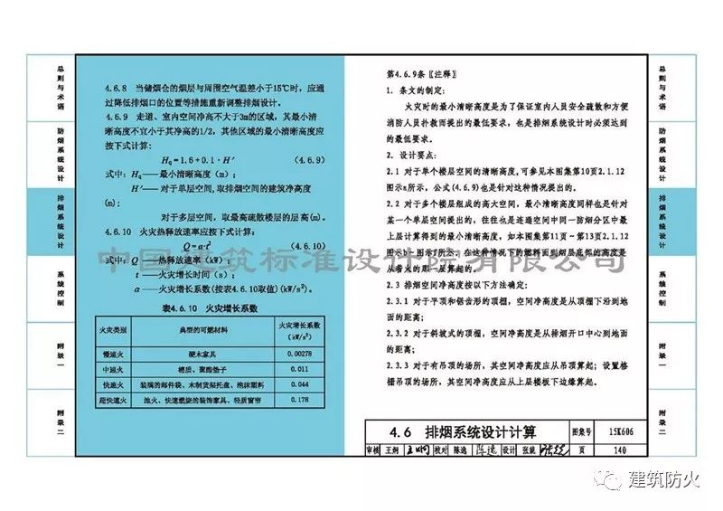 7、第140頁(yè)的正文公式4.6.10中,“t”改為“火災(zāi)增長(zhǎng)時(shí)間”。