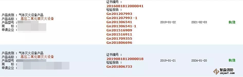 小編查看了中國消防產品信息網,隨便點擊查看了一類氣體滅火設備。