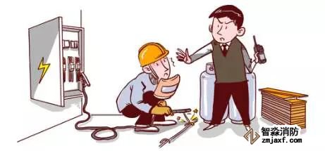 對于建筑工地中存在的一些明火源應專人負責,現(xiàn)場監(jiān)護,做到人走火滅,對于工地的做飯、取暖,要有專人負責,責任到人,定期檢查,電焊、切割人員必須經(jīng)過培訓,持證上崗,無論長期、短期工地,堅決杜絕亂接亂拉電氣線路現(xiàn)象。無論是施工用電還是生活用電,必須杜絕“小馬拉大車”現(xiàn)象,必須要請懂電氣的專業(yè)電工負責施工和管理。消防安全培訓。