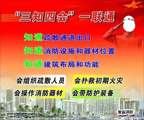 三知”是指知道消防設施和器材的位置知道安全通道和出口、知道建筑布局和功能;“四會”是指會疏散逃生會撲救初期火災會穿戴防護裝具、會使用消防器材;“一聯通”是指消防支隊(大中隊)與微型消防站、微型消防站與隊員要保持通信聯絡暢通。