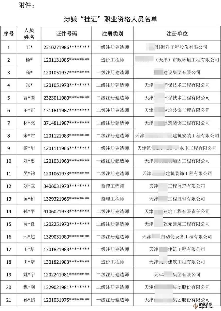 附件:涉嫌“掛證”職業資格人員名單