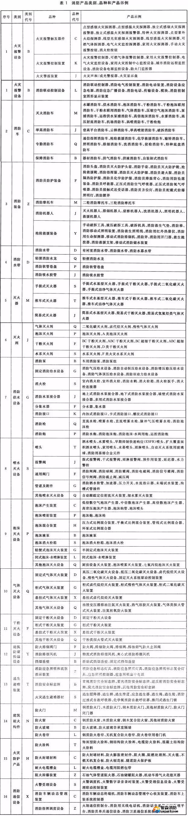 ③ 表1中未包含的消防新產品,其類別和品種代號可由產品歸口管理部門具體規定。
