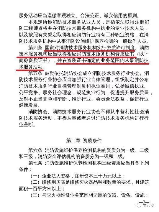 “ 取消消防設(shè)施維護保養(yǎng)檢測、消防安全評估機構(gòu)資質(zhì)許可制度,企業(yè)辦理營業(yè)執(zhí)照后即可開展經(jīng)營活動。”這是征求意見稿非常重要的一條。