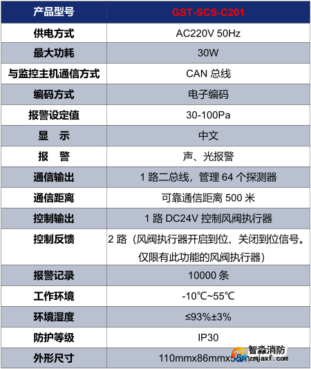 二、海灣GST-SCS-C201余壓控制器技術(shù)參數(shù)